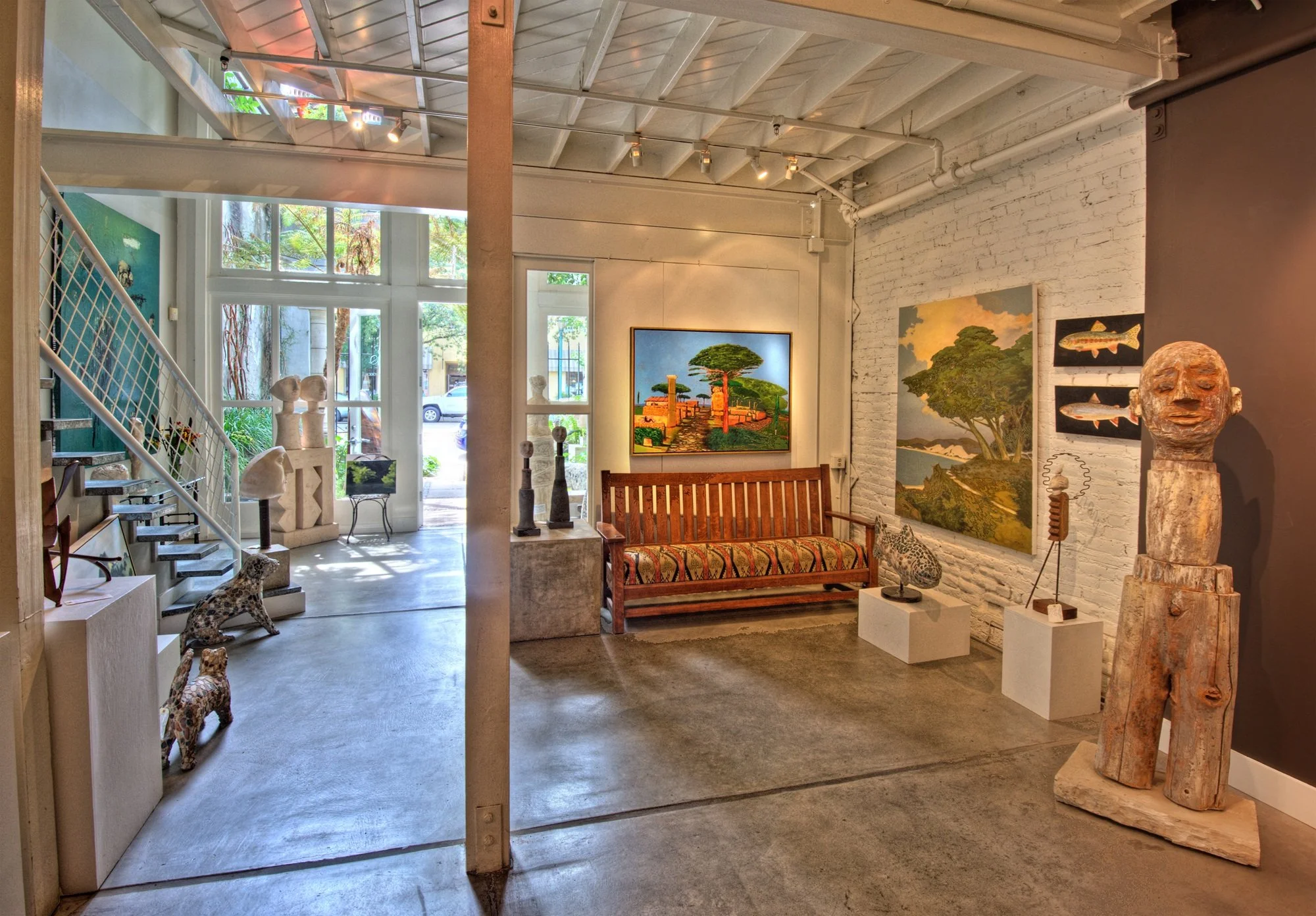 Established in 1983 by Sandy Erickson, Erickson Fine Art Gallery is a respected contemporary art gallery now located in Healdsburg, California, where it is directed by Erickson and co-owner Danielle Elins. Housed in a historic Palladio-style building on Healdsburg Avenue, the gallery spans three light-filled stories showcasing a broad range of paintings, sculpture, and mixed media works by local and internationally known artists, with a strong emphasis on Northern California talent. The space also features a dedicated print room with signed and numbered limited editions, a sculpture garden displaying works in steel, granite, wood, stainless steel, and aluminum, and striking mobiles and kinetic works by Jerome Kirk suspended throughout the gallery.